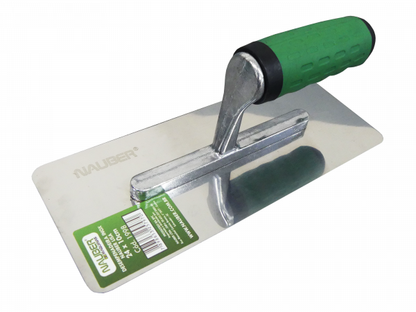Desempenadeira lisa com lâmina premium em aço INOX com bordas arredondadas e cabo ergonômico emborrachado.