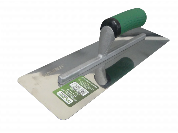 Desempenadeira com múltiplas funções com lâmina premium em aço INOX com bordas arredondadas e cabo ergonômico emborrachado.