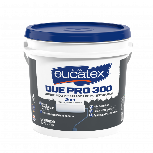 Due Pro 300 possui nova fórmula que atribui ao produto alto poder de cobertura, baixo respingamento, alto poder de aglutinação de partículas soltas preparando as superfícies para um sistema de pintura perfeito. Ainda ajuda a evitar o desplacamento, desbotamento precoce da tinta, aparecimento de bolhas, eflorescência e saponificação. Também aumenta a durabilidade da tinta. Com todos estes atributos e ainda por ser branco ajuda a cobertura da parede e consequentemente número menores de demãos da tinta.