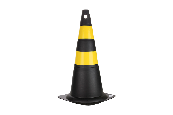 Cone 70 cm fabricado em polipropileno e fita adesiva em vinil com proteção UV. Adaptado com fendas para inserção de fitas e correntes.